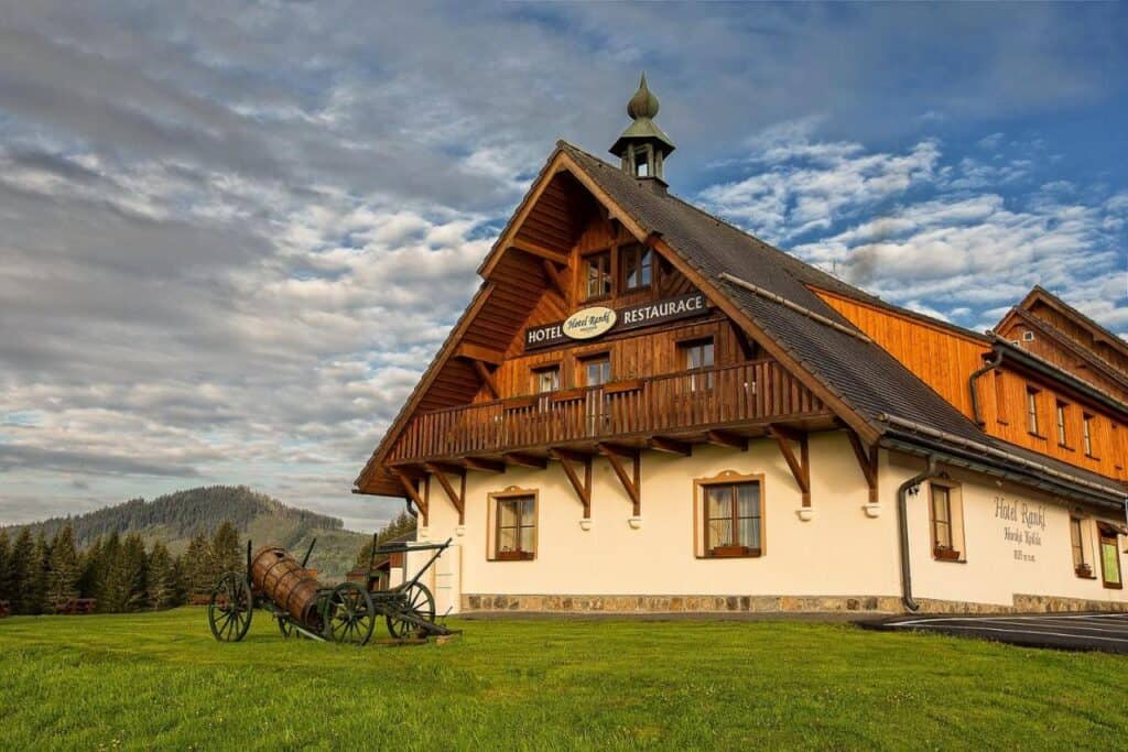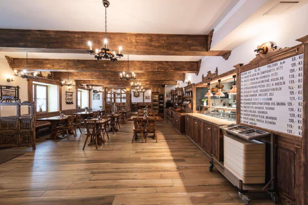 The Rankl Restaurant is known for its elegant yet homely atmosphere. The interior is decorated in a traditional mountain style with wood, stone and a beautiful view of the Šumava landscape.